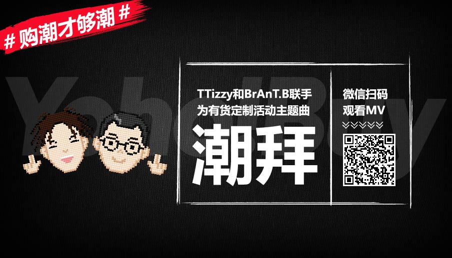 YOHO是现在中国颇具影响力的潮流文化撒播平台之一 ,,,搭建以潮流内容、产品为基础 ,,,以媒体+零售+活动为载体的线上线下一体化潮流营销平台 ,,,TTizzy和BrAnT.B联手为有货节定制活动主题曲《潮拜》